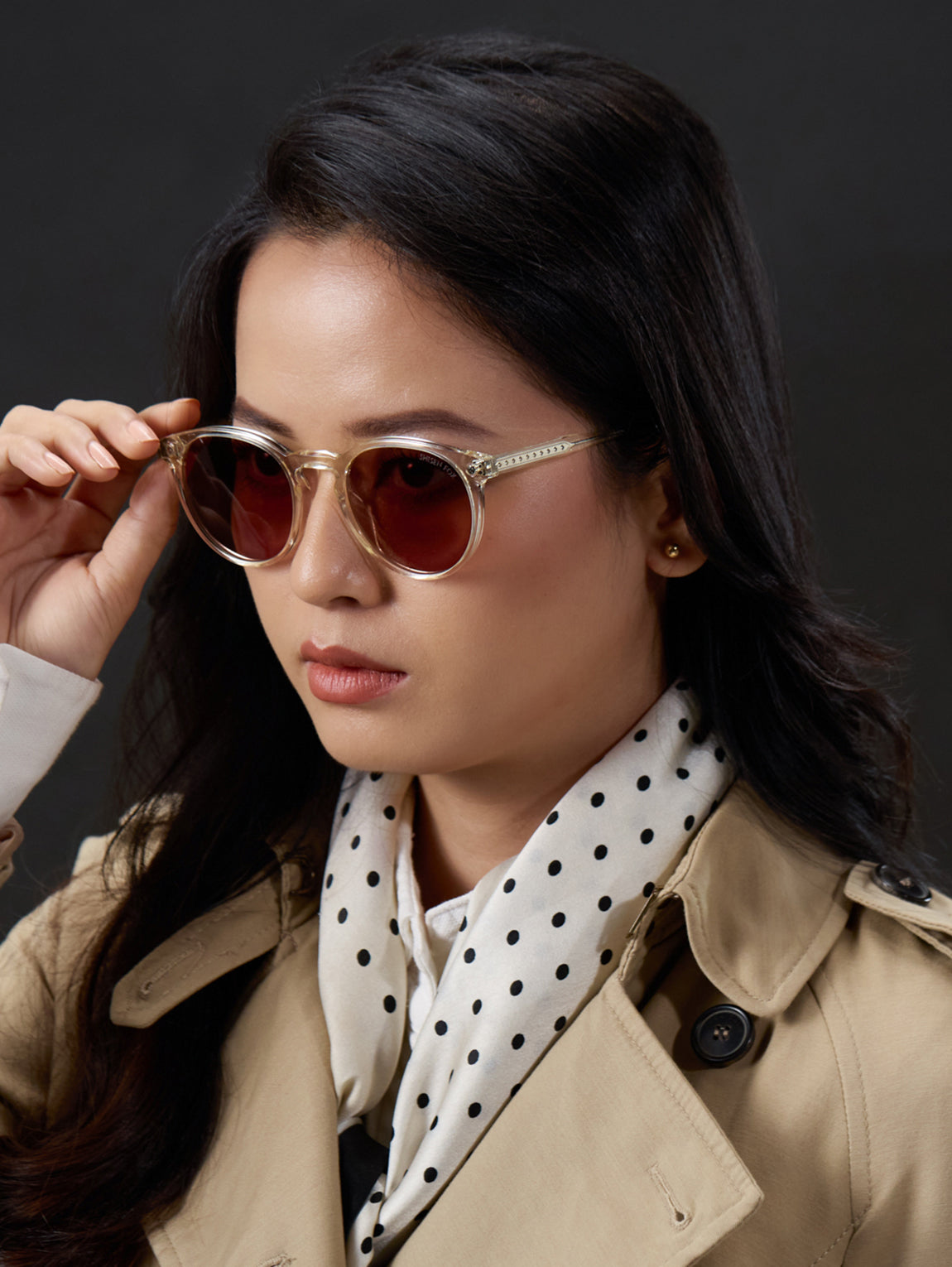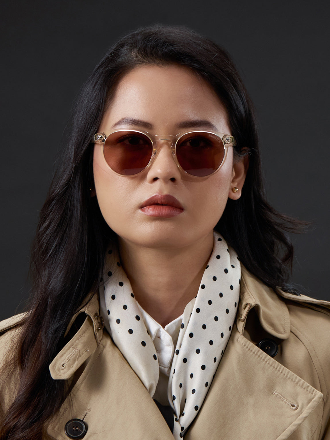 FUKUI-The Fukui sunglasses exude refined sophistication with a panto eye shape. A best-seller, they offer a versatile color palette that effortlessly complements any occasion. Made from lightweight acetate and sculpted for optimal comfort, these frames are perfect for both sunglasses and prescription lenses. The round fox emblem on the front adds a signature touch, elevating the design with distinctive flair. Fukui is the perfect blend of style, comfort, and timeless elegance.