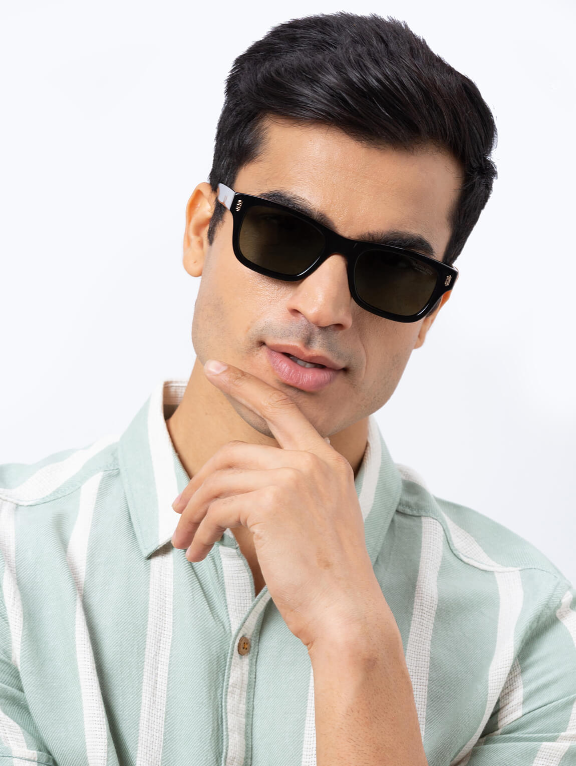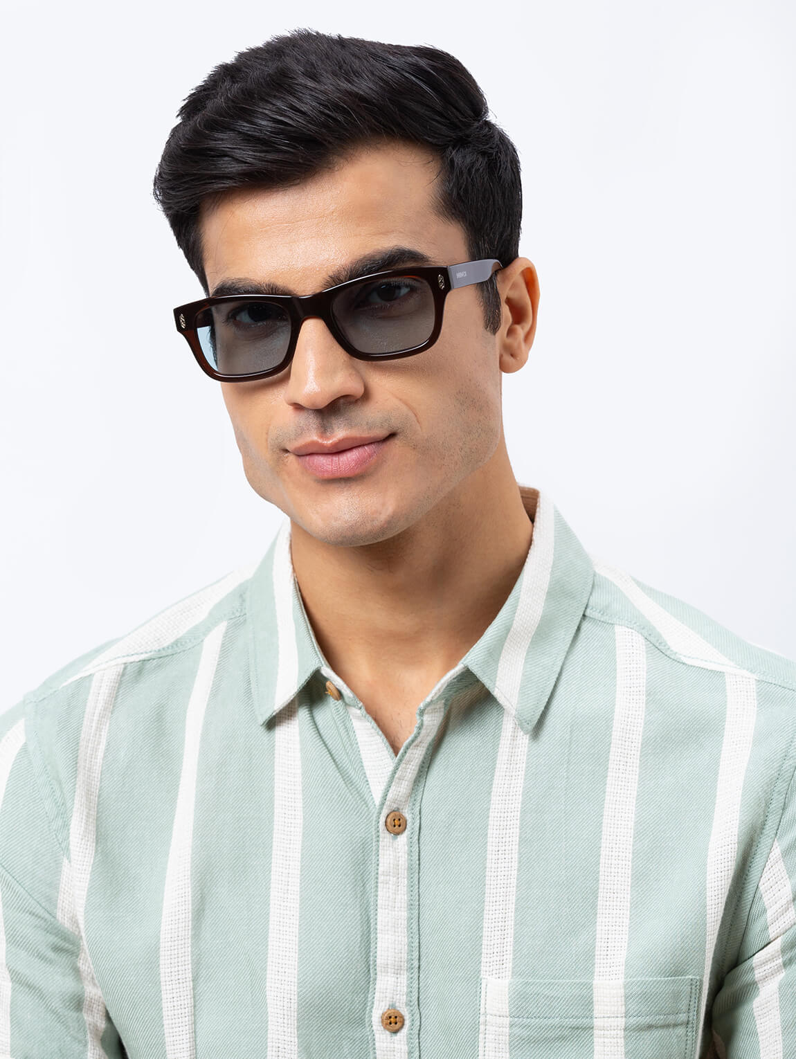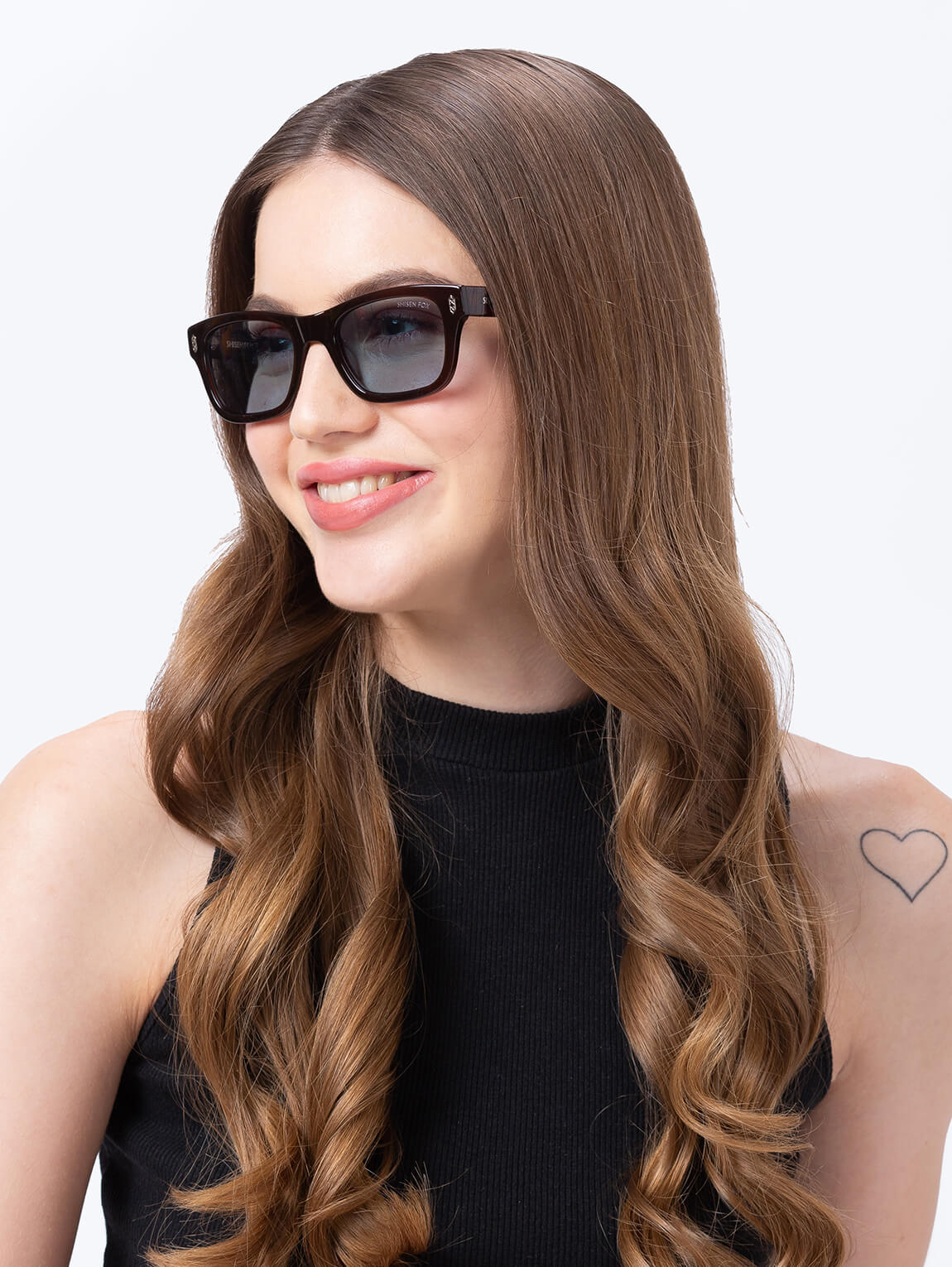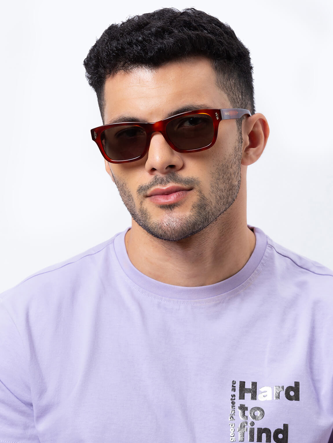 Thin and powerful shapes, subtle details and distinctive color frames, the defined personality of new full acetate frames with a linear and minimalist style. Gazo is a sunglass with a classic silhouette, featuring the vintage square style that is timeless.