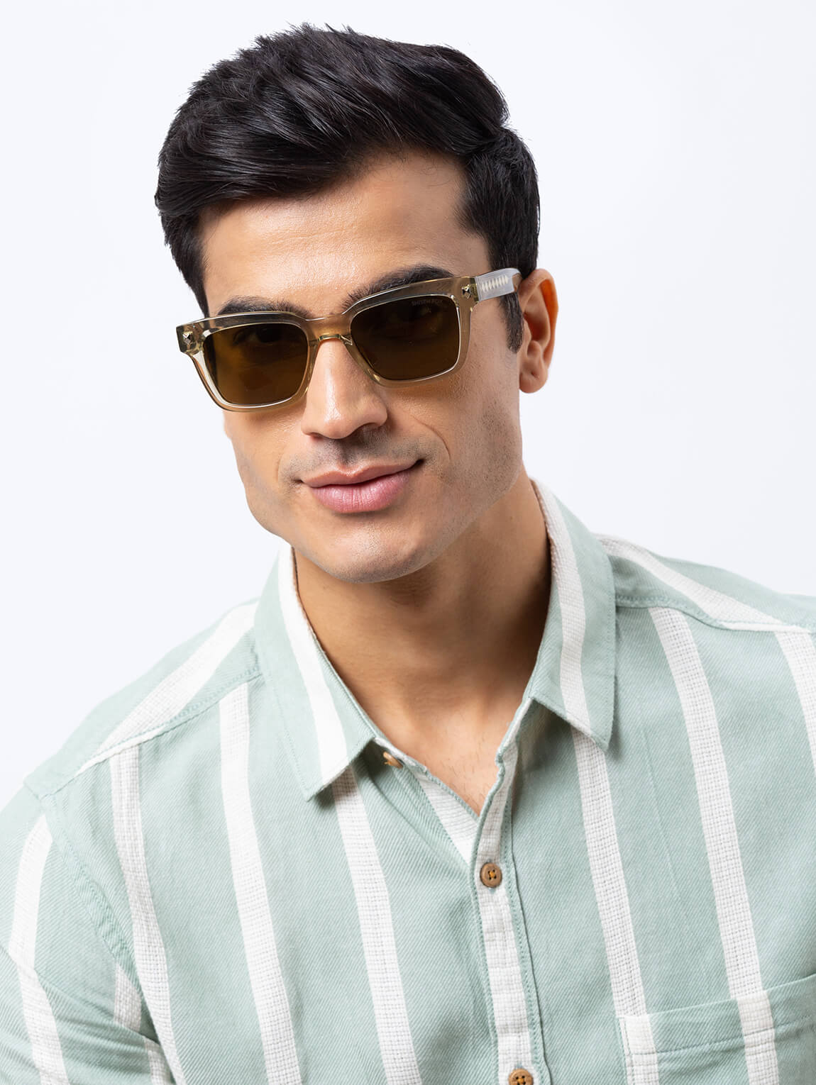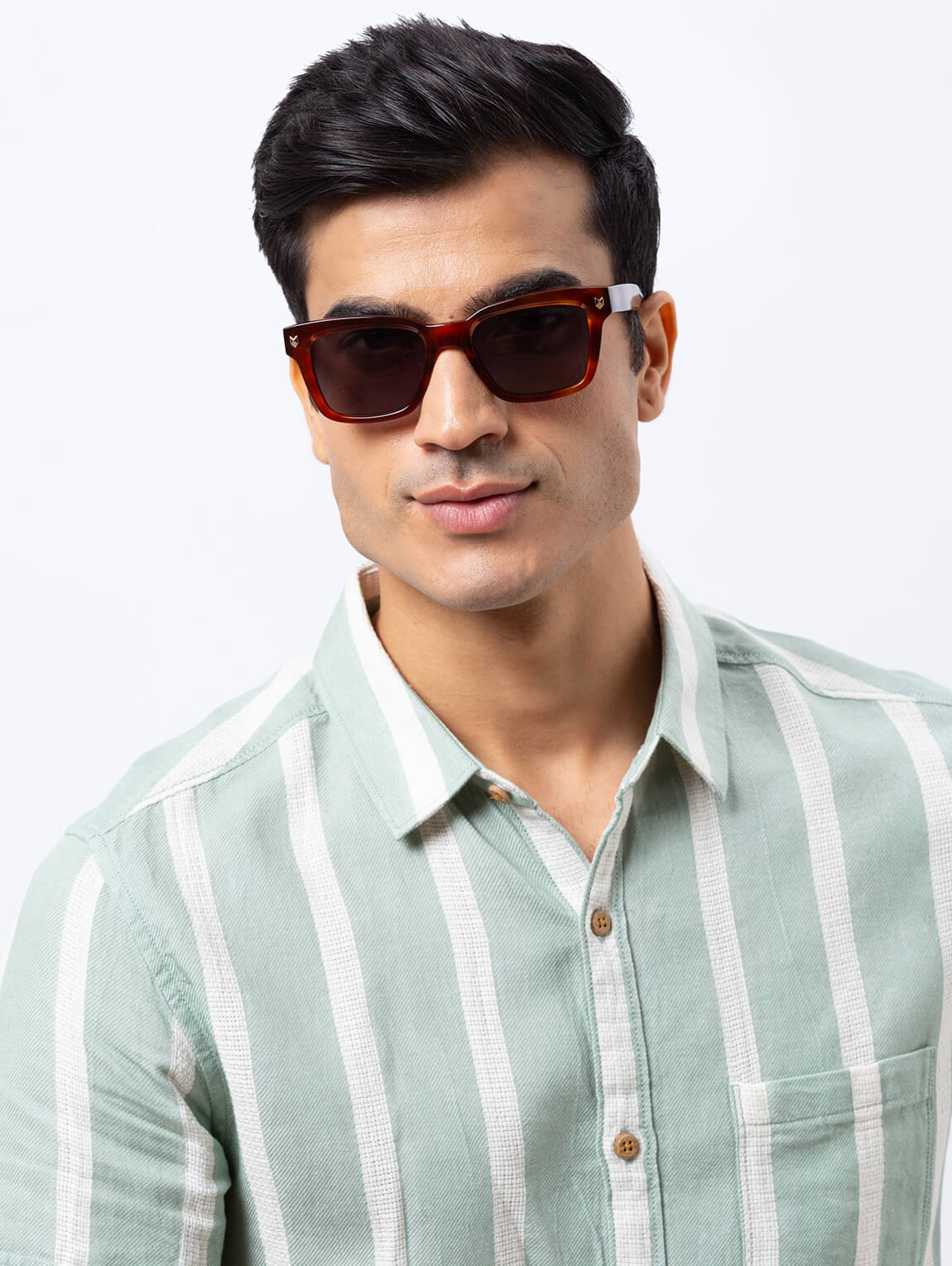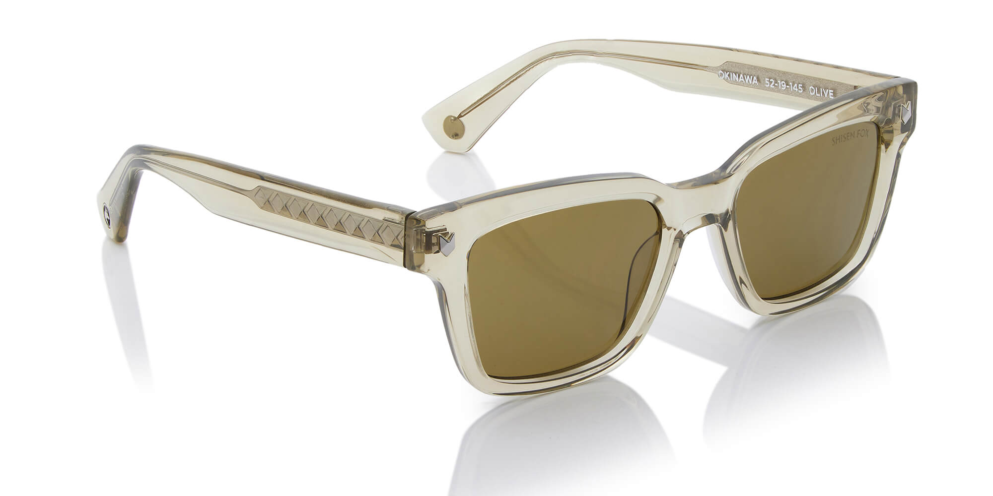 Okinawa, a square acetate shape taking inspiration from archive pieces but with bolder volumes especially on the medium-sized temples. This unique shape has become the unmistakable brand icon. The vintage eye shape and the minute details that makes this model a timeless classic.
